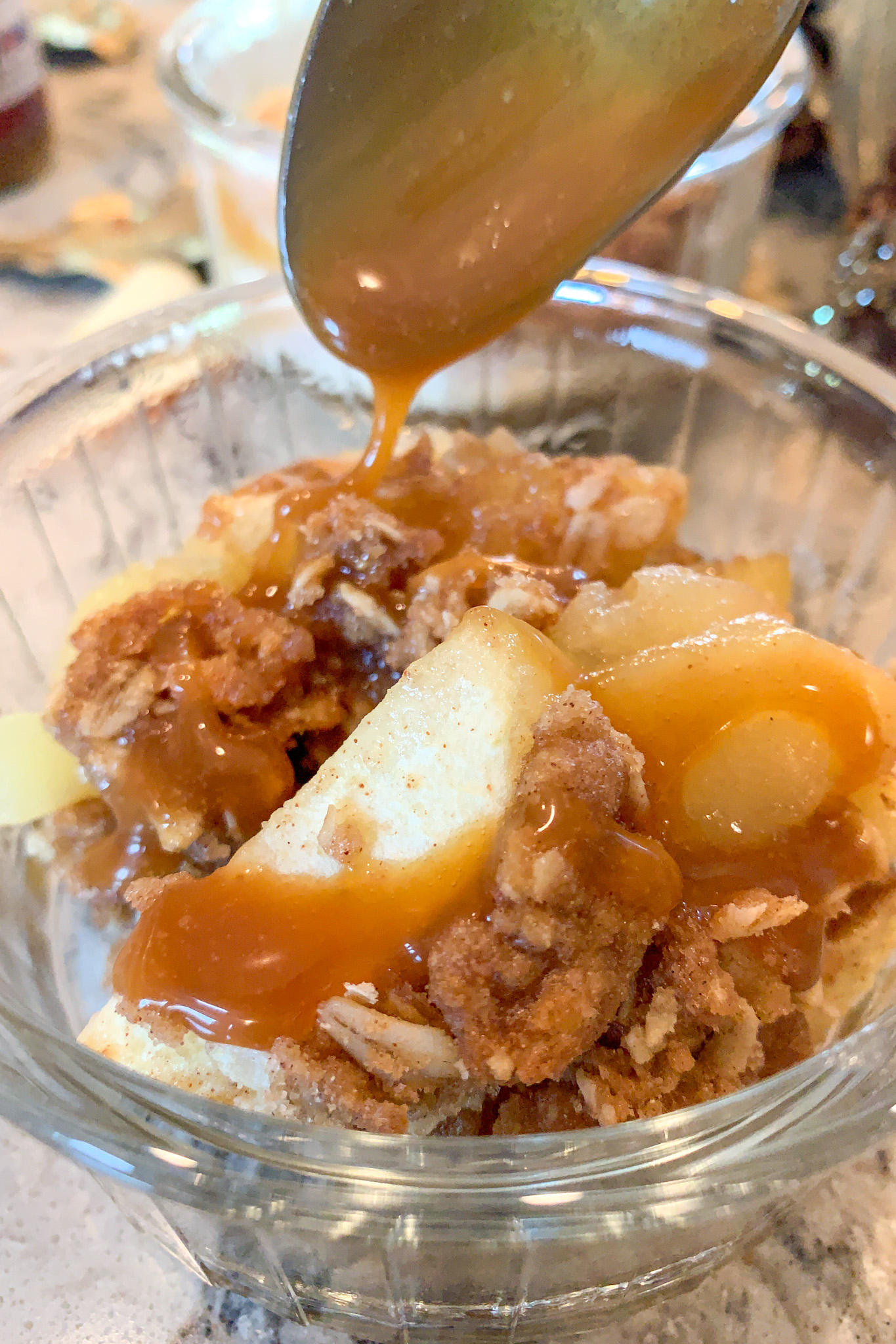 - Serve warm with optional (but highly recommended) ice cream and caramel sauce. Enjoy!